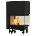 Угловая подъемная дверца из жаропрочной стеклокерамики со вставкой стекла с трех сторон: фронтального и двух боковых, увеличивает обзор на пламя и горящие дрова.